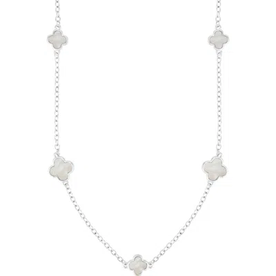Mother Of Pearl Clover Station Necklace In White