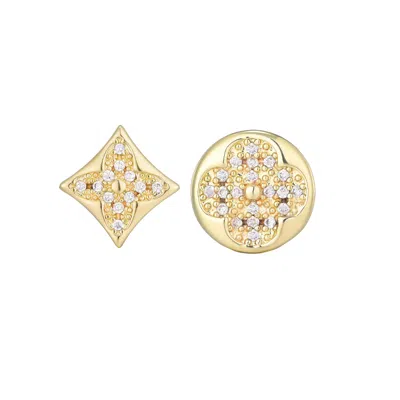 14k Gold Plated Mismatched Cz Clover Stud Earring Pair