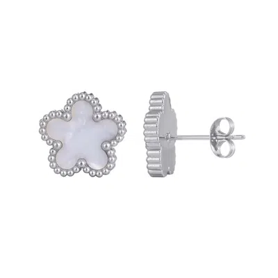 Silver Plated Flower White Imitation Mother Of Pearl Stud Earrings