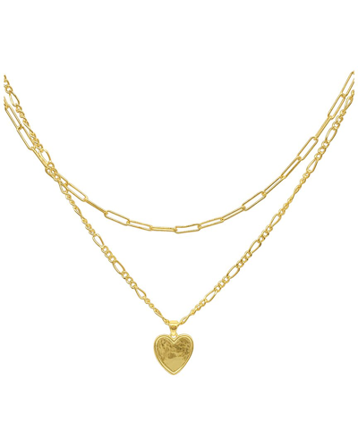Paper Clip And Figaro Heart Chain Set Necklace In Gold