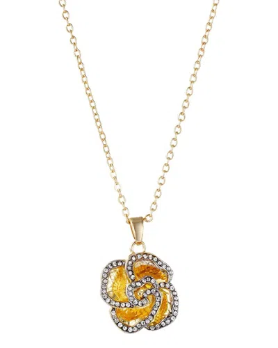 Plated Crystal Encrusted Flower Pendant Necklace In Gold