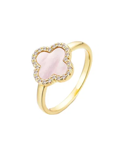 Gold Mother Of Pearl Cubic Zirconia Halo Clover Ring