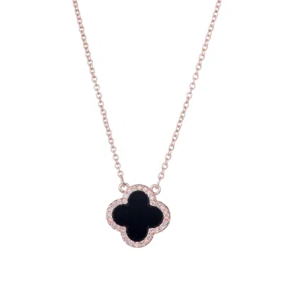 Cubic Zirconia Clover Pendant Necklace In Black