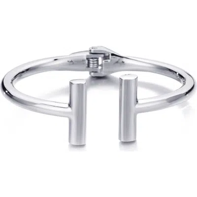 Silver Plated Hinge Nail Cuff Bracelet In Metallic