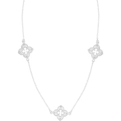 Cz 36in Clover Station Necklace In Metallic