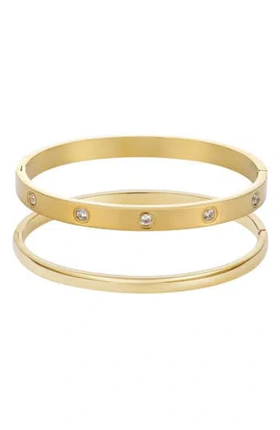 Tarnish Resistant 18k Gold Plated Eternity And Plain Cuff Set