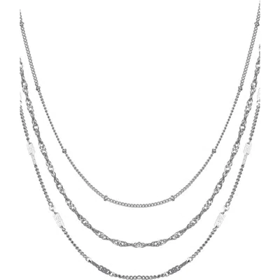 Silver Plated 3-chain Necklace Set In Metallic