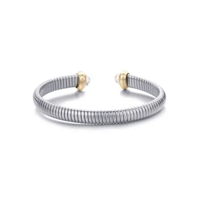 Silver Plated Coil Cuff With Clear Stones In Metallic