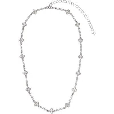 Silver Crystal Clover Tennis Necklace In White