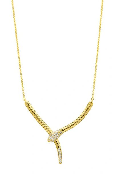 14k Plated Crystal Lariat Necklace In Yellow