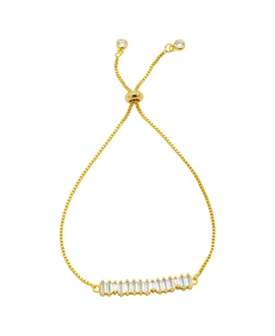 14k Gold-plated Bolo Bracelet With Baguette Crystal Bar