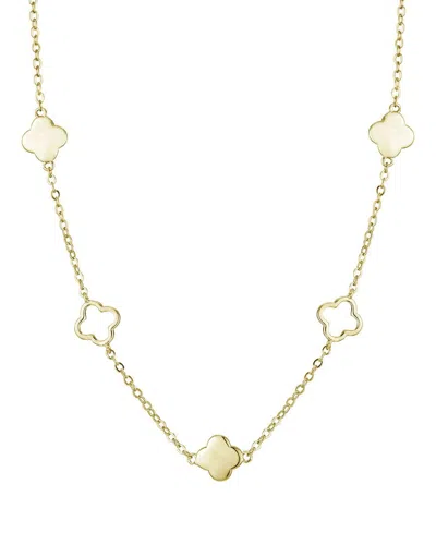 14k Plated Mother Of Pearl 36in 5-leaf Clover Station Necklace In Gold