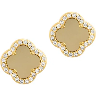 14k Gold Plated Black Halo Cz Clover Stud Earrings In Multi