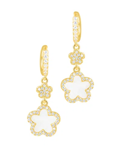 Gold Plated 36" Mother Of Pearl Flower Station Necklace In White
