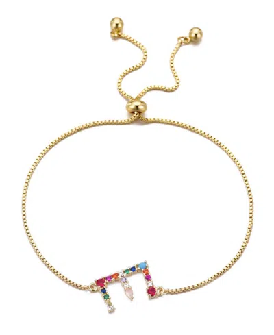 14k Gold Plated Multi Color Stone Initial Bolo Bracelet