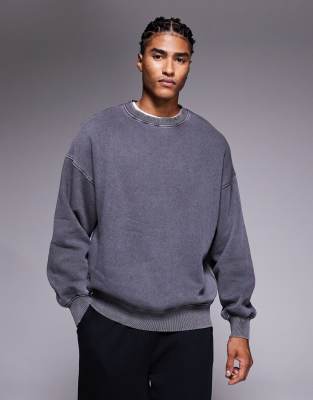 Oversized Knit Sweater With Los Angeles Print In Gray