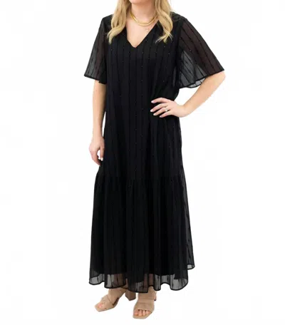 Velvet Flutter Sleeve Maxi Dress In Black
