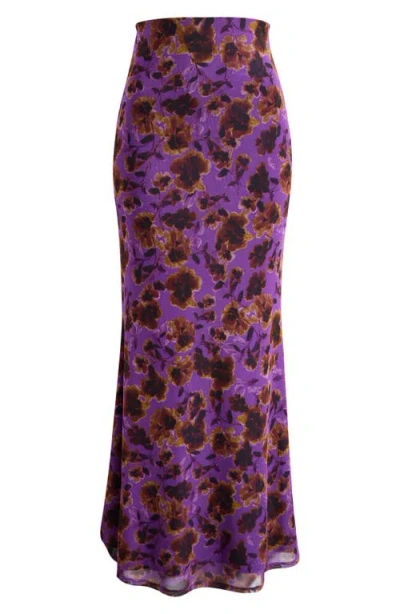 Tegan Floral Bias Cut Skirt In Purple