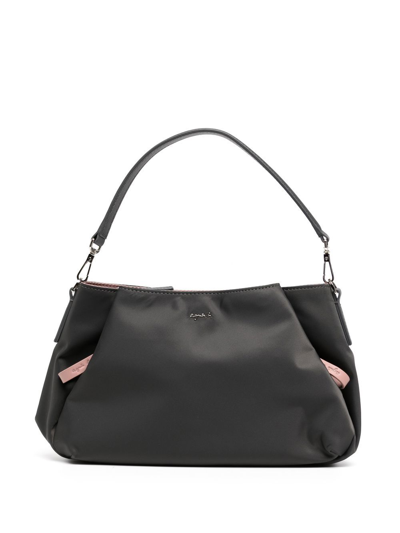 Logo-plaque Satin Shoulder Bag In Grey
