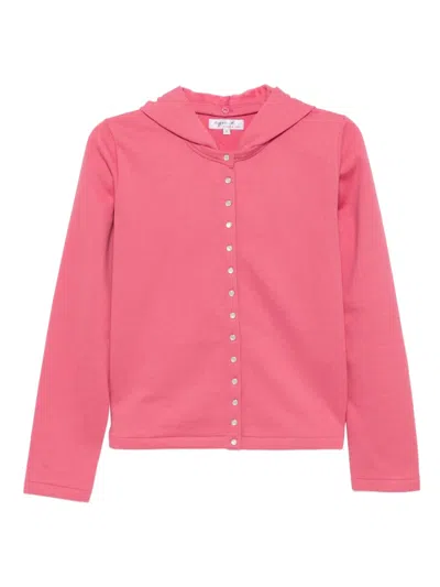 Snap Cotton Hoodie In Pink