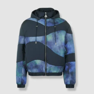 Pre-owned $1050 Men's Blue Shakti Patchwork Hooded Puffer Jacket Size L