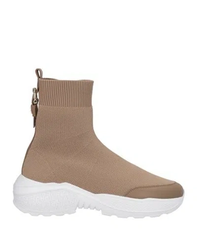 Woman Sneakers Taupe Size 9 Textile Fibers In Gray