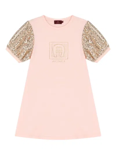 Kids' Sequin-embellished Bag Logo Casual Dress In Pink