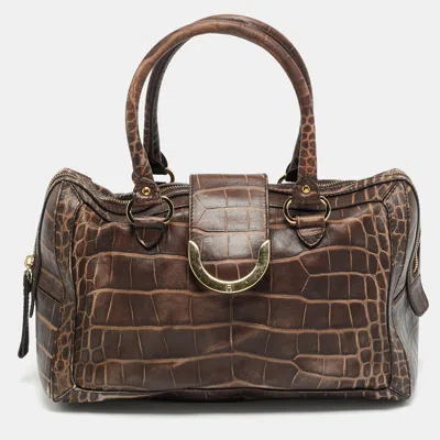 Pre-owned Brown Croc Embossed Leather Zip Satchel
