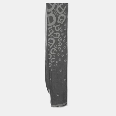 Pre-owned Grey Viscose Blend Horseshoe Logo Fringed Scarf