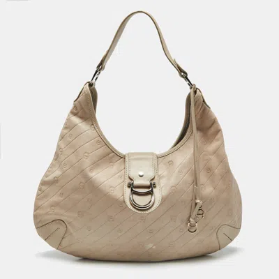 Pre-owned Light Beige Logo Embossed Leather Charm Hobo In Sand