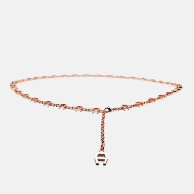 Pre-owned Tan Leather Logo Waist Belt 85 Cm In Brown