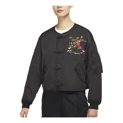 (wmns) Chinese New Year Printing Ribbed Cuff Reversible Jacket Black