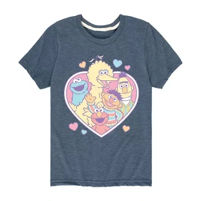 Big Kid Girls Round Neck Short Sleeve Classic Fit Sesame Street Graphic T-shirt In Blue