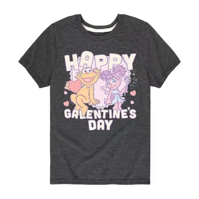 Big Kid Girls Round Neck Short Sleeve Classic Fit Sesame Street Graphic T-shirt In Gray