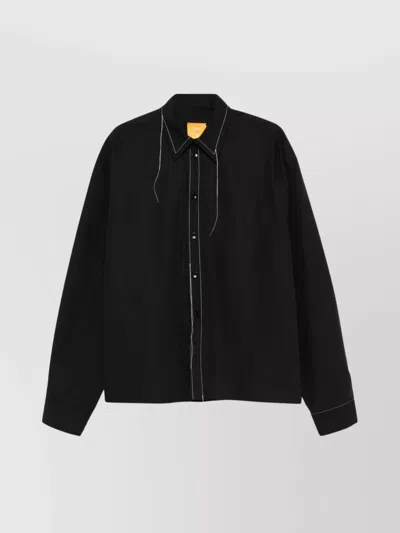 Cotton Shirt With Inverted Pleat And Drop Shoulder In Black