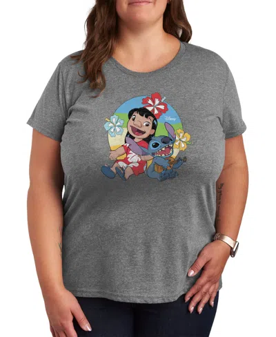 Trendy Plus Size Lilo And Stitch Graphic T-shirt In Gray