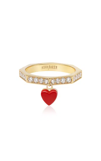 How Charming Twinkle Heart 18k Yellow Gold Diamond And Enamel Ring In Red