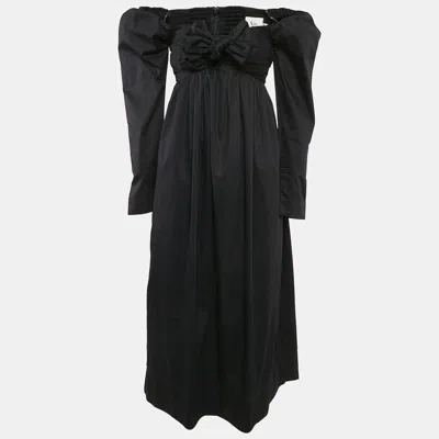 Pre-owned Black Cotton Bow Detail Off-shoulder Midi Dress Xs