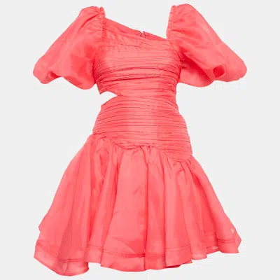Pre-owned Pink Pintucks Organza Puff Sleeve Mini Dress S