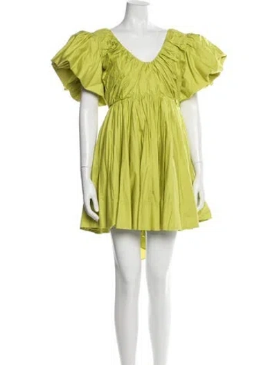 Pre-owned Square Neckline Mini Dress In Yellow