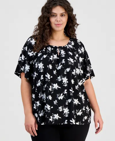 Plus Size Printed Keyhole Top In Black