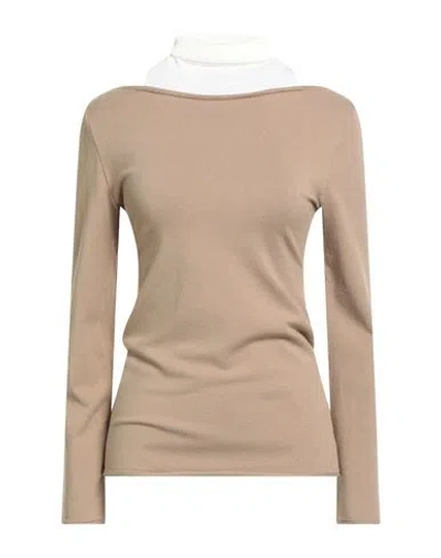 Woman Turtleneck Camel Size 6 Viscose, Polyamide, Elastane In Neutral