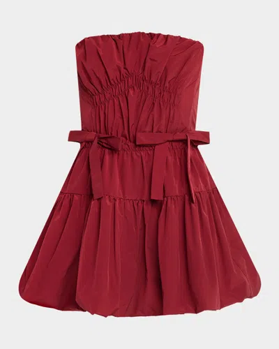 Kamilla Strapless Taffeta Bow Mini Dress In Red