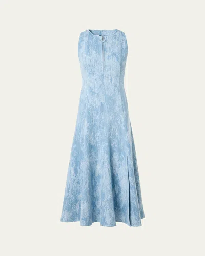 Jacquard Denim Sleeveless Quarter-zip Midi Dress In Blue