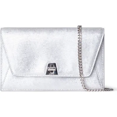 Anouk Lizard Embossed Leather Envelope Wallet On A Chain In Metallic