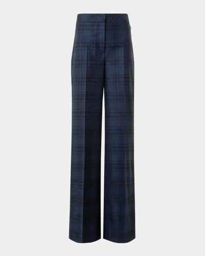 Fior Check Wool Flannel Wide-leg Trousers In Blue