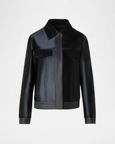 Gemini Calf Shearling And Leather Trucker Jacket In Black
