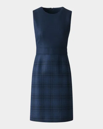 Check Wool Double-face Sleeveless A-line Dress In Blue