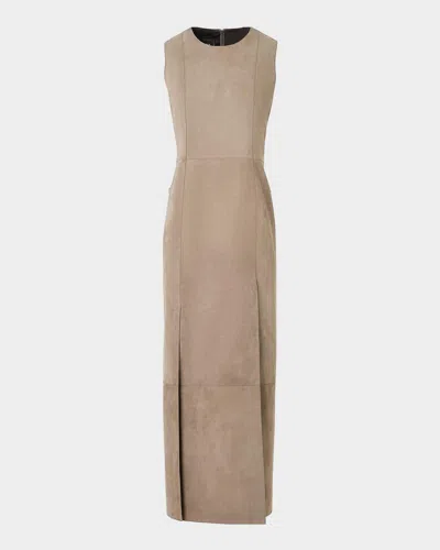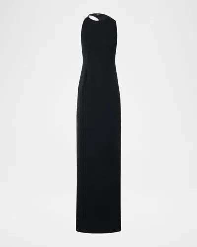 Sleeveless Back-cutout Wool Slit Gown In Black