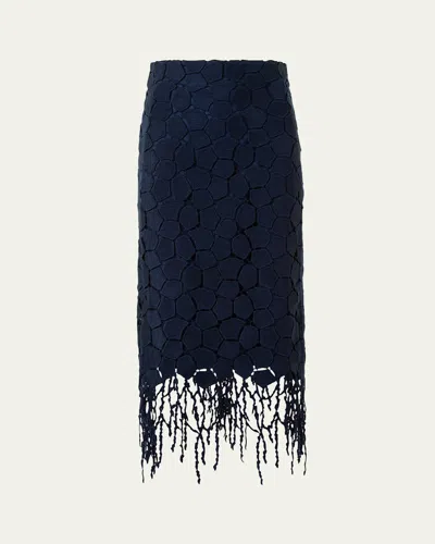 Broken Stone Guipure Fringed Midi Pencil Skirt In Blue